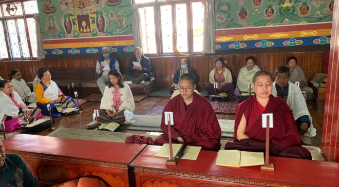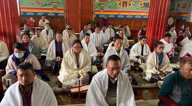आचार्य लामा कर्मा साङ्बोले प्रत्येक महिना गर्दै आउनु भएको एक दिने समथ एवम् विपश्यना ध्यानको पछिल्लो श्रृंखला फागुन ७ गते शनिवार सम्पन्न भएको छ । ध्यान शिविर काठमाडौँको स्वयम्भू, हल्चोकस्थित ब्राका समाजसेवा समिति गुम्बामा आयोजना भएको थियो । ध्यान शिविरमा करिब ९० जना सहभागि भएको आचार्य लामा कर्मा साङ्बोले जानकारी दिनुभयो ।