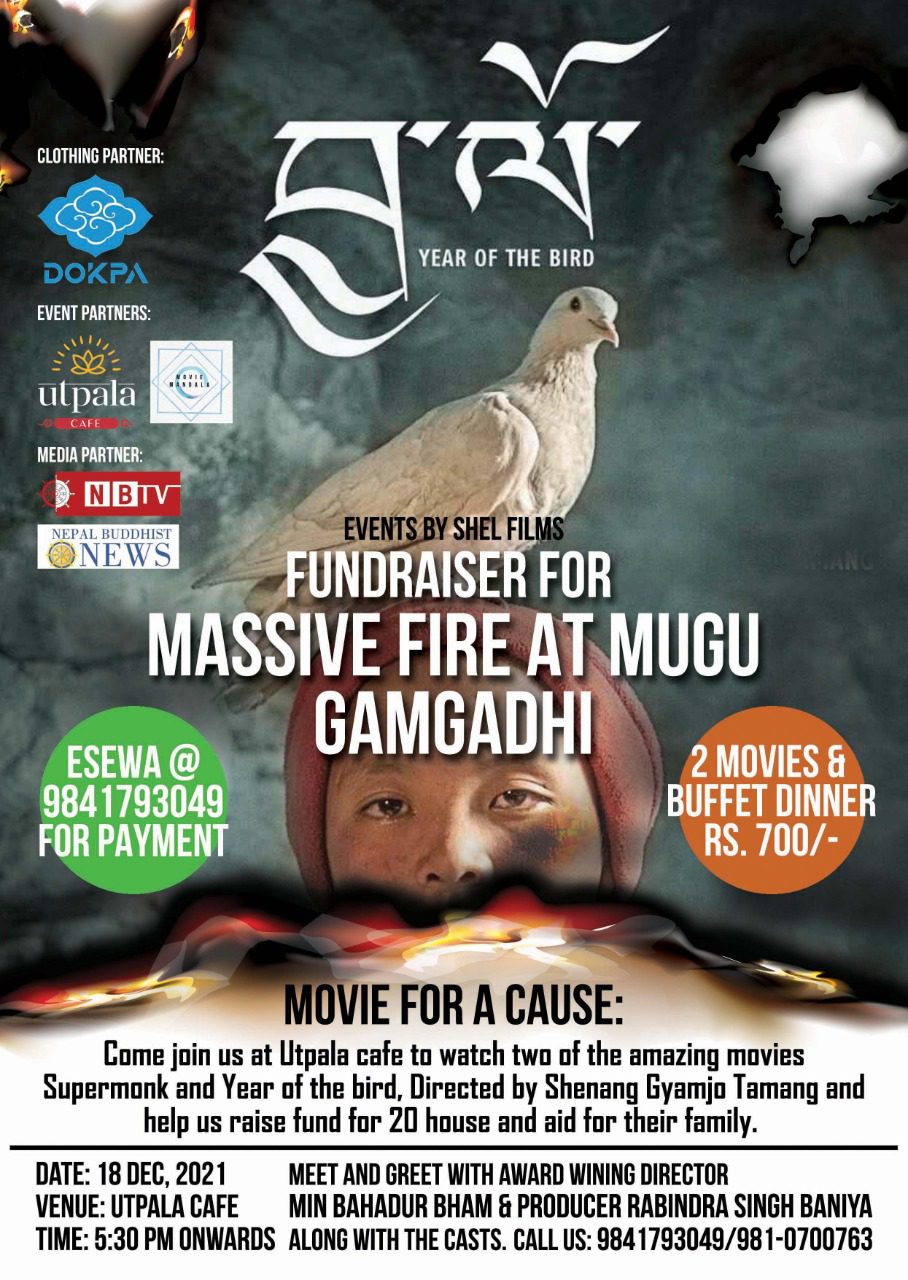 मुगुमा आगलागीमा परेका २० घरका परिवारलाई चिसोबाट राहत दिने उद्देश्यले भिक्षु सेल्नाङ ग्याम्जो तामाङले काठमाडौँमा च्यारिटी सो गर्ने भएका छन् । २० घरका करिब ८० जनालाई ज्याकेट सहयोग गर्नका लागि भिक्षु सेल्नाङले यही डिसेम्बर १८ अर्थात् पुस ३ गते शनिवार बौद्धको उत्पला क्याफेमा आफ्ना दुई फिल्म प्रदर्शन गदैछन् । भिक्षु सेल्नाङ निर्देशित यी दुई फिल्म अन्तराष्ट्रिय फिल्म फेस्टिभलहरुमा समेत प्रदर्शन भइसकेका फिल्म हुन् । पालमुनि बसिरहेका उनीहरुलाई बढ्दै गरेको चिसोका कारण न्यानो कपडाको आवश्यकता देखेपछि उनले आफ्ना दुई फिल्मको च्यारिटी सो गर्दै ज्याकेट किन्ने रकम जुटाउन लागेका हुन् । भिक्षु सेल्नाङलाई इभेन्ट पार्टनरको रुपमा उत्पला क्याफेले साथ दिएको छ । त्यस्तै क्लोथिङ पार्टनरको रुपमा डोक्पा रहेको छ । यस च्यारिटी सोको मिडिया पार्टनरमा नेपाल बुद्धिष्ट न्यूज र एनबी टीभी रहेको छ ।