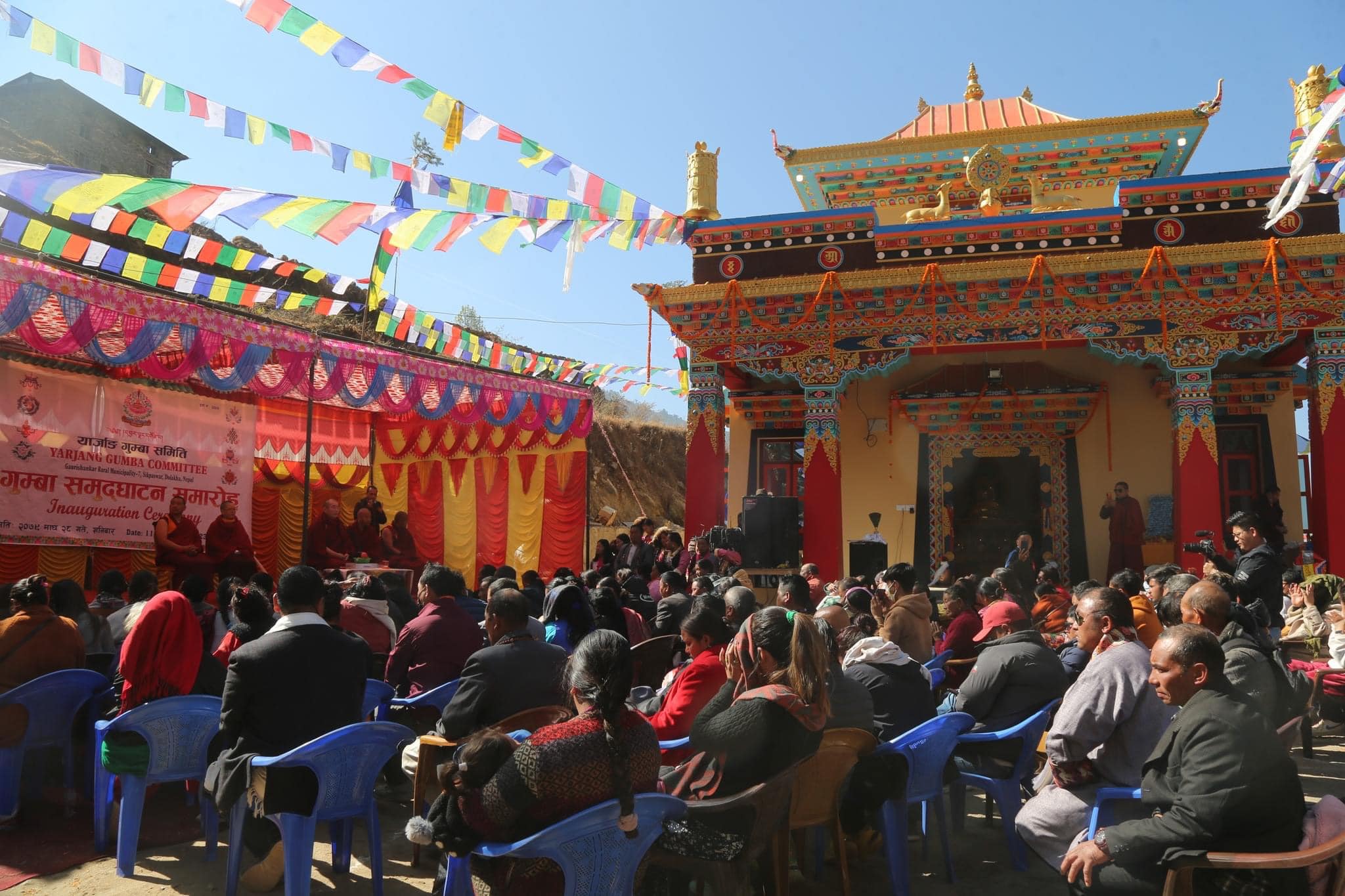 गोन्पा उद्घाटनका लागि मैसुर गोन्पाका प्रमुख परम् पूजनिय धर्मगुरू छ्योग्टुल ग्याङ्खाङ् रिन्पोछ्येज्यू लाई आमन्त्रण गरी माघ २७ गते छम्बा गुम्बा र २८ गते यार्जाङ गुम्बाको प्राण प्रतिष्ठान (राब्ने) पूजा, र आयुभिषेक, शरणगमनको शील प्रदान आदि धार्मिक र संस्कृतिक कार्यक्रमहरु भई गुम्बाको समुद्घाटन भव्य रूपमा सम्पन्न भएको छ ।