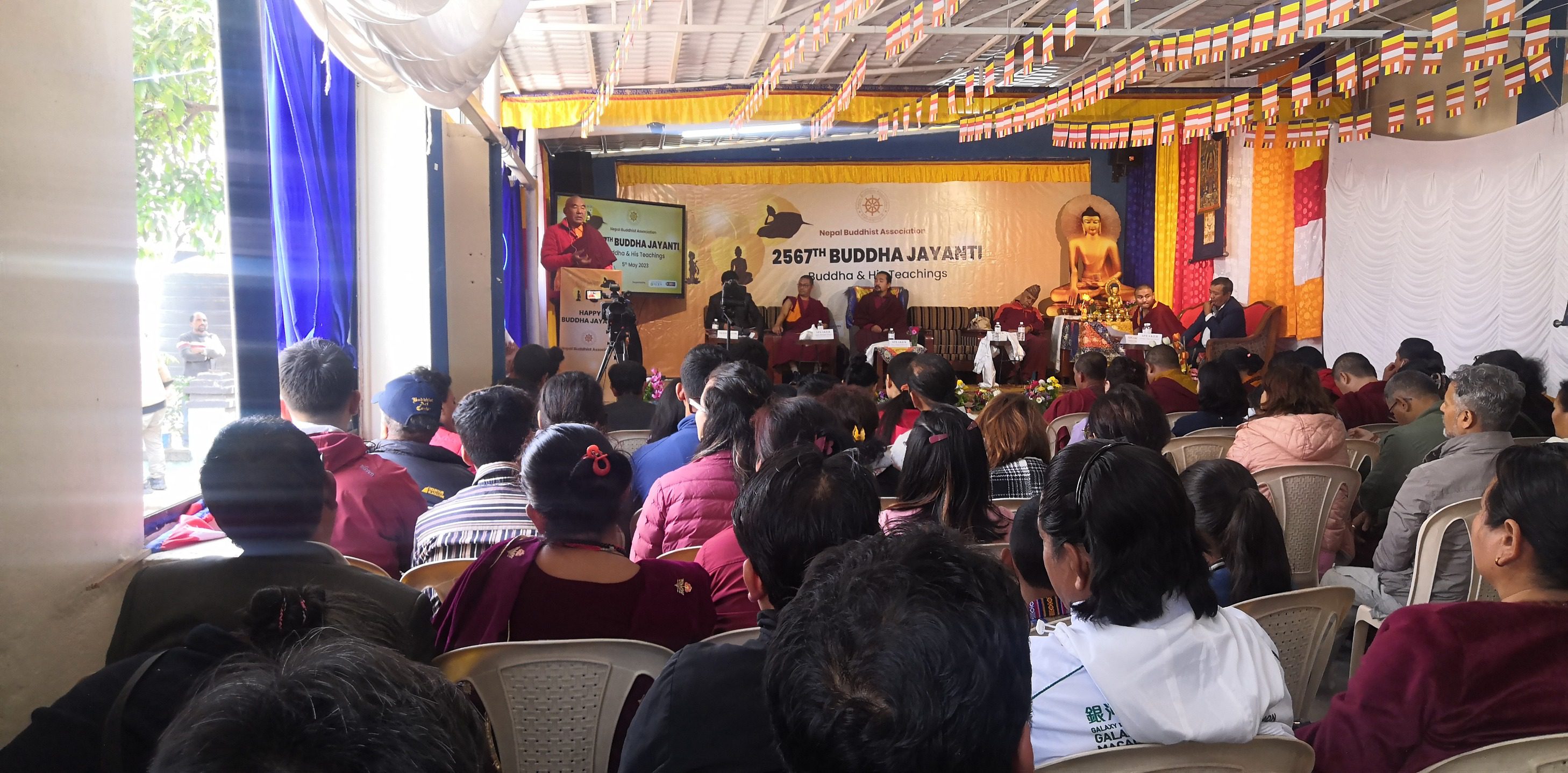 २५६७ औँ बुद्ध जयन्तीको अवसरमा काठमाडौँको स्वयम्भूमा नेपाल बौद्ध संघले विशेष कार्यक्रमको आयोजना गरेको छ । कार्यक्रमा छोग्याल रिन्पोचे, खेन्पो ङवाङ होइसेर, सांगे रिन्छेन, लोपेन नाम्गेल, टीका शेर्पा र पूण्यप्रसाद पराजुली विशेष वक्ताका रुपमा सहभागि थिए । कार्यक्रममा सांगे रिन्छेनले बुद्ध जयन्तीको महत्प, पुण्यप्रसाद पराजुलीले बुद्ध जीवनी, लोपेन नाम्गेलले पञ्चशील, टीका शेर्पाले आर्य अष्टांिगक मार्ग र खेन्पो ङवाङ होइसेरले चार आर्य सत्यको बारेमा प्रवचन दिएका थिए ।