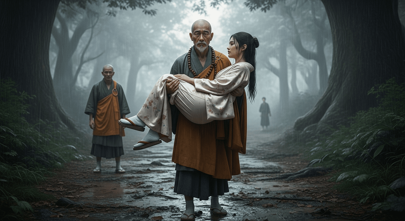 तर, उनका साथी एकिदो भने भित्रभित्रै रिसाइरहेका थिए। उनी चुपचाप तान्जानको पछि-पछि हिँड्न त थाले, तर उनको मनमा प्रश्नहरूको आँधी चलिरहेको थियो। ‘हामी भिक्षुहरूले महिलाहरूबाट टाढा रहनुपर्छ। हामीले उनीहरूलाई छुनु हुँदैन, विशेषगरी युवती र सुन्दर महिलाहरूलाई। यो त नियमको घोर उल्लंघन हो! तान्जानजस्तो वरिष्ठ भिक्षुले यस्तो कसरी गर्न सके?’